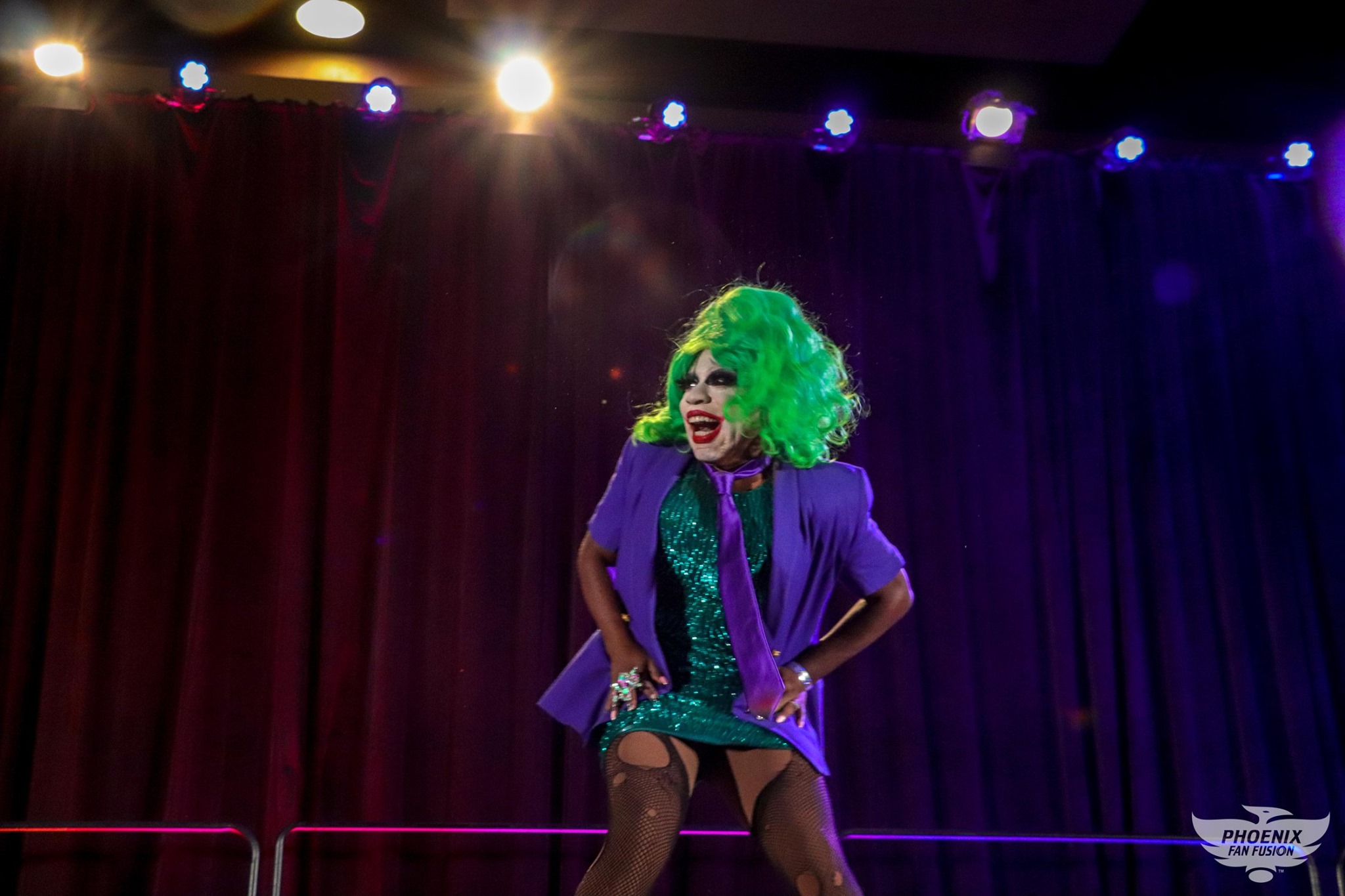 HA HA HA! Why so serious?! Living for these official photos from @phoenixfanfusion of the Queen Lantern Corps. Dragstravaganza event on Friday night. Which era of the #Joker is your favorite?