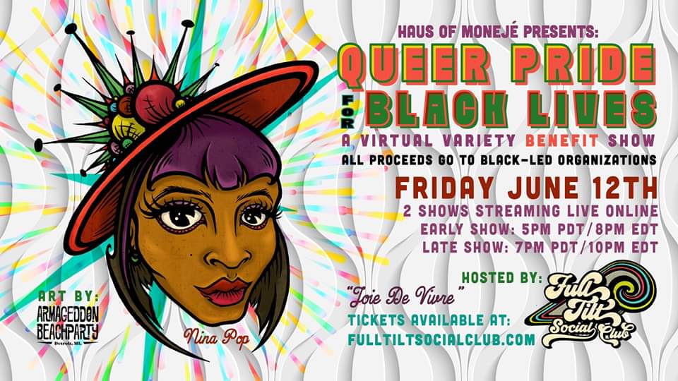 This is fabulous! I hope that you will you will join the Queer Pride for Black Lives, a virtual variety benefit show with all proceeds going to Black-led organizations, like the Foundation for Black Heritage & Culture on Fri., June 12. There are entertainers from all over the country participating in this virtual show — it has two shows at 5 p.m. PDT/8 p.m. EDT and 7p.m. PDT/10 p.m. EDT.