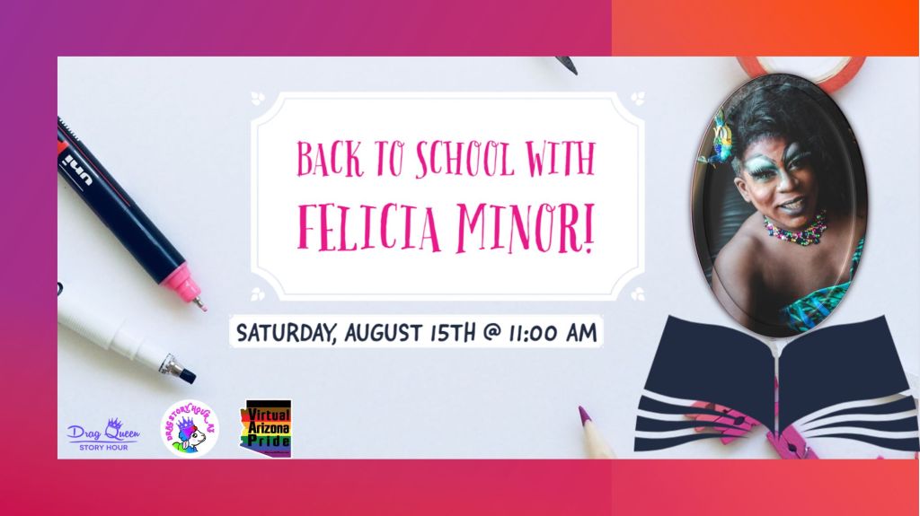 Join me tomorrow (Aug. 15) for Drag Story Hour – Arizona’s Back to School with Felicia Minor at 11 a.m. on the Drag Story Hour – Arizona’s Facebook page at facebook.com/dragstoryhour.az. I will be reading books that will talk about building confidence, making friends in school and more. Grab your family join me for a story hour, just in time for going back to school.