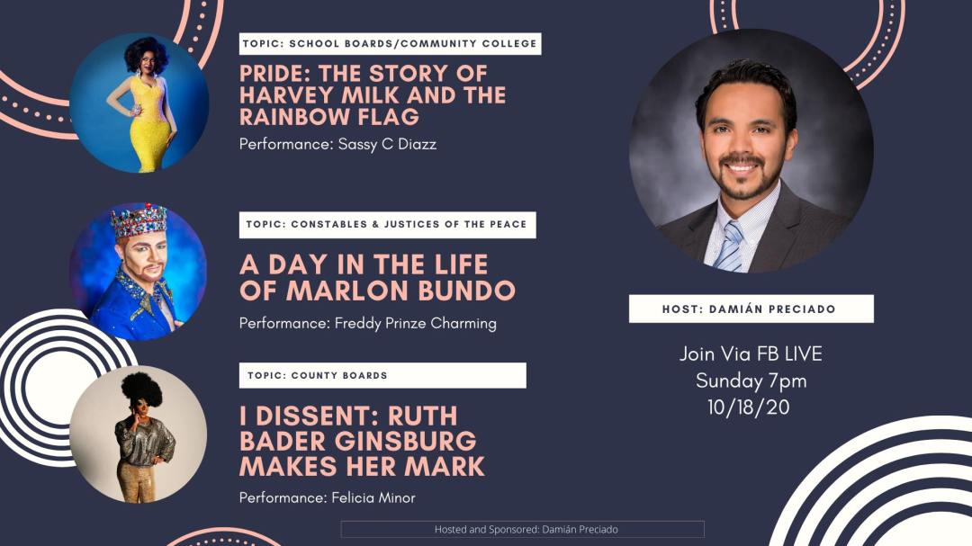 I am excited for a special night of discussion and story hour with the Democracy Night with Drag Story Hour – Arizona with Sassy Charming Diazz, Freddy Prinze Charming and me. This event will be hosted by Damián Preciado.