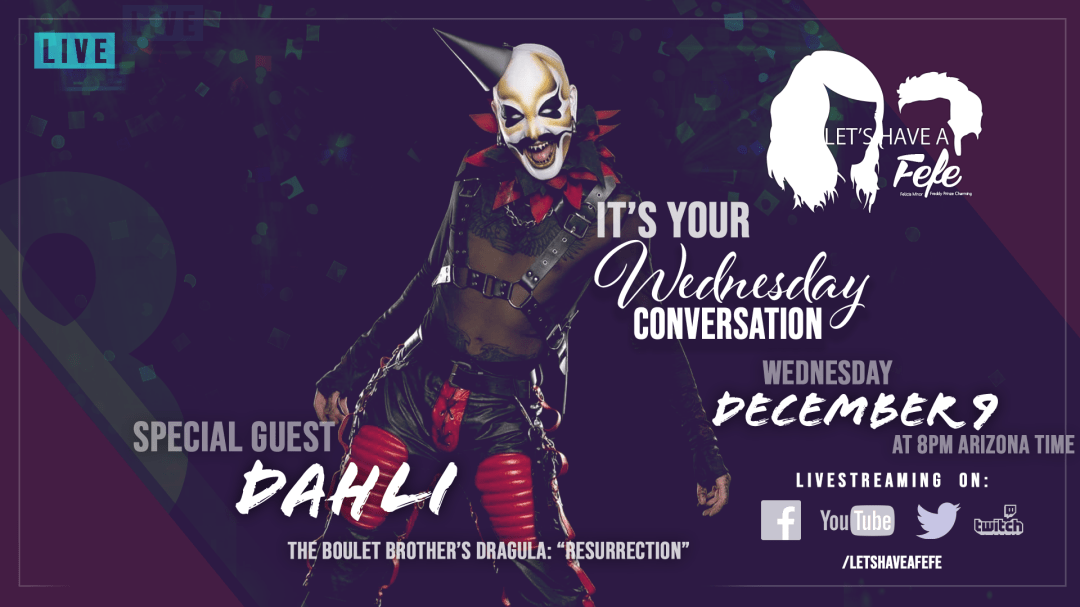 We started talking “backstage” and started like a minute late. Ha ha, but it was great being able to talk with Dahli again on the tonight’s episode of Let’s Have A Fefe.
