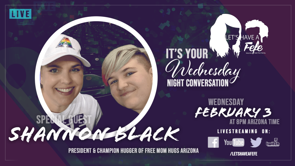 Who doesn’t need a hug? Especially these days! This week we welcome Shannon Black, champion hugger and chapter lead of Free Mom Hugs – Arizona, to join the conversation on Let’s Have A Fefe with Felicia “Fefe” Minor and Freddy Prinze Charming.