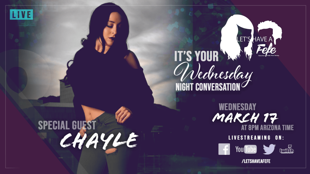 We missed Freddy this week and hope that he returns in one piece. This week, in his absence, we had special guest host Patricia Mason join us as we welcome special guest Chayle — pronounced KUH-lee.