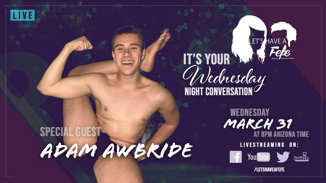 It’s YOUR Wednesday night conversation! This week we have Adam Awbride joining us for an all-new episode of Let’s Have A Fefe with Felicia “Fefe” MInor & Freddy Prinze Charming. Learn how he is flexing his marketing muscles as an adult film artist.