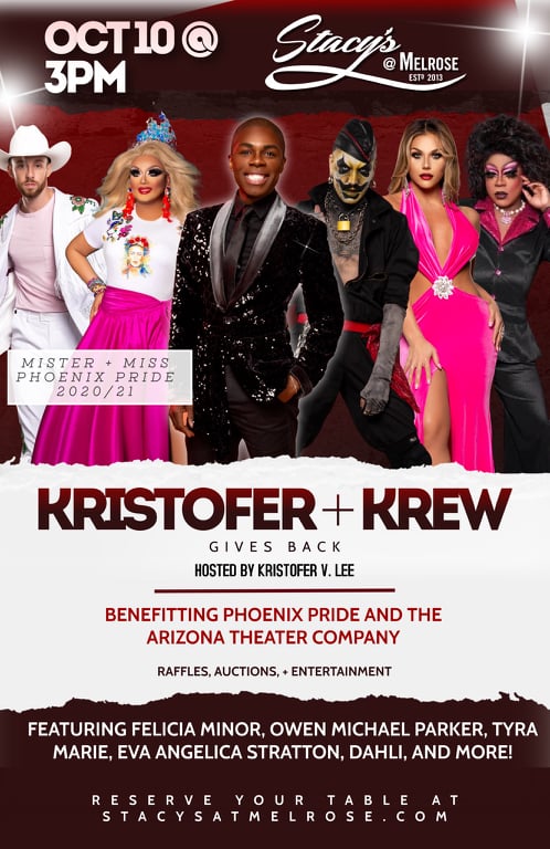 As we are getting ready for the weekend and you all are getting to attend events like Kristofer + Krew Gives Back benefitting Phoenix Pride and Arizona Theatre Company, I think we should follow or connect.