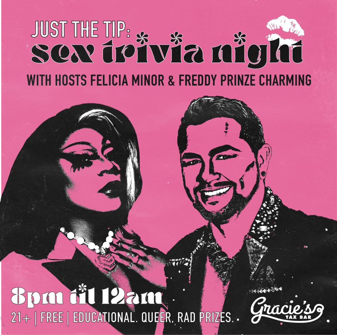 Join Freddy Prinze Charming and me for an all-new round of Just the Tip: Sex Trivia Night at Gracie’s Tax Bar in Phoenix on Sat., Jan. 29 starting at 8 p.m. There is no cover or reservations needed to attend.