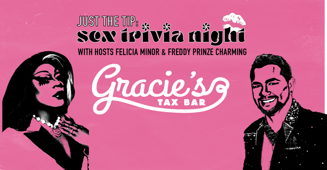 You should join Freddy Prinze Charming and me for an all-new Just the Tip: Sex Trivia Night at Gracie’s Tax Bar in Phoenix. The sign-ups for the first round kick off at 8 p.m. and we start promptly at 8:30 p.m. It’s a great time!