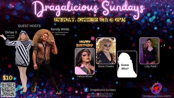 I am back from New York City and ready to kick off my first performance of my birthday month at Bumsted’s in Tucson for Dragalicious Sunday. The show is being guest hosted by Miss AGRA Candidate Dirtee X and Mr. Gay Painted Desert USofA at Large Randy Wilde.