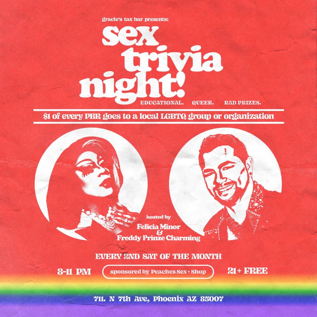 Join Freddy Prinze Charming and me for an all-new round of Just the Tip: Sex Trivia Night at Gracie’s Tax Bar in Phoenix at 8 p.m. on Sat., Oct. 22. This is a 21+ event and is free to play.