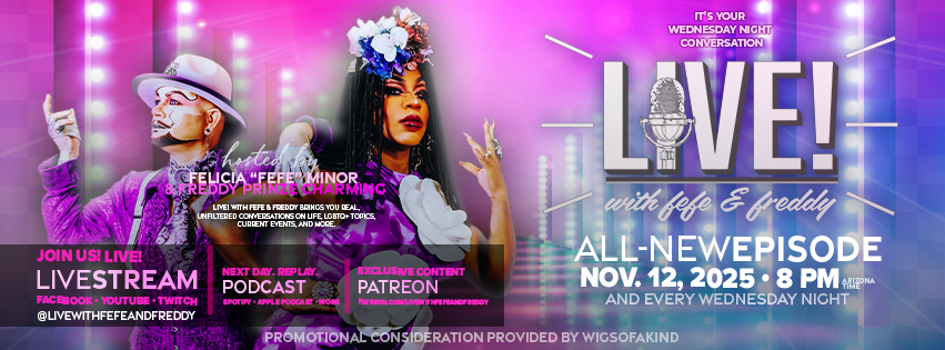 Tomorrow night at 8 p.m. MST, join Freddy Prinze Charming and me, Felicia “Fefe” Minor, for a brand-new episode of Live! with Fefe & Freddy — your Wednesday night conversation that keeps it real, relevant, and just a little bit rebellious.